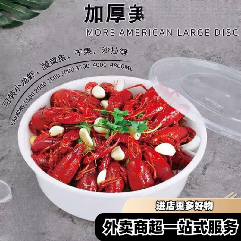 Главная страница > 圆形一次性大餐盒带盖外卖打包盒加厚透明大号盆打包碗