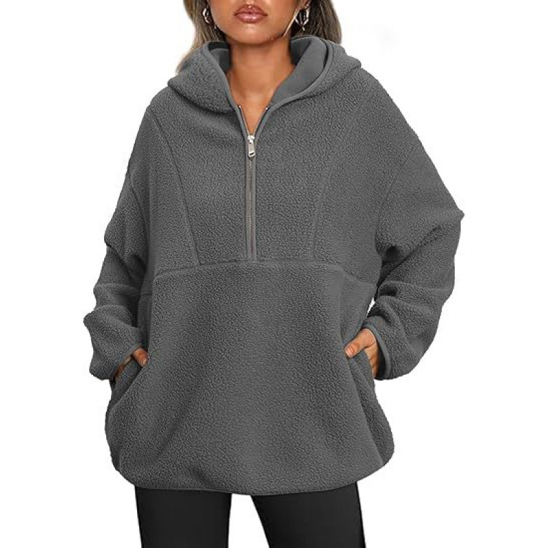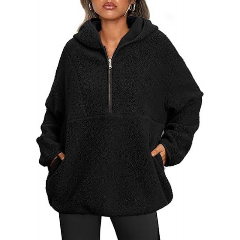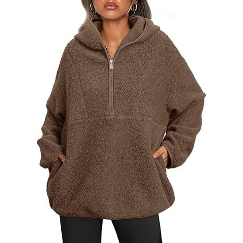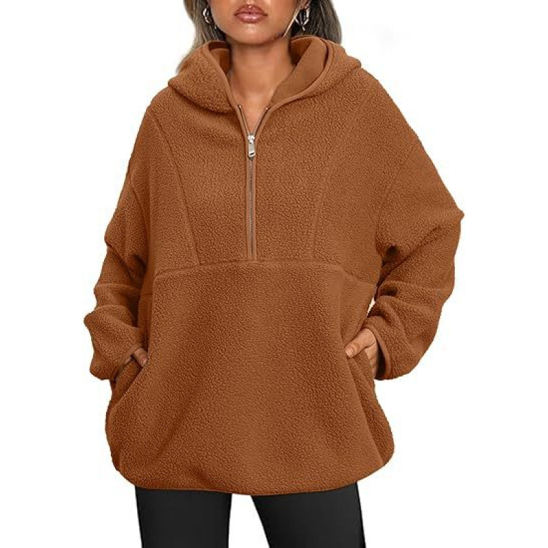 Главная страница > Женская флисовая толстовка-худи Amazon 2025 с молнией до середины груди, пуловер, зимняя одежда