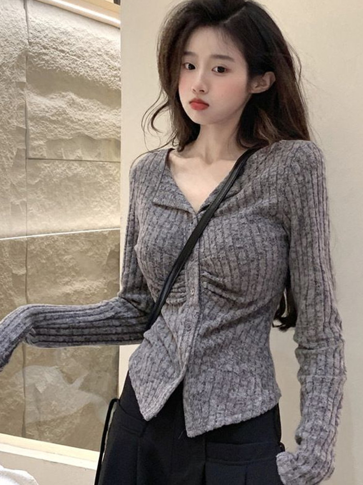 Главная страница > Американский нежный минус стиль вязаный свитер женский осенний длинный рукав с отворотами