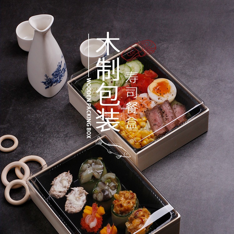 Одноразовая Высококачественная деревянная коробка для завтрака, упаковочная коробка для свежего мяса для суши, Экологически чистая разлагаемая упаковочная коробка на вынос различных спецификаций