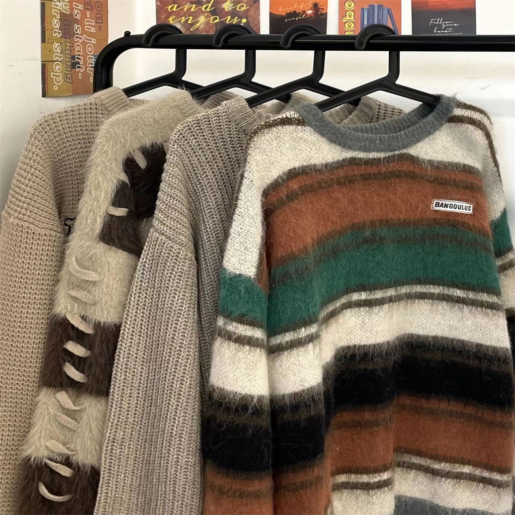 Главная страница > Осенний и зимний новый школьный свитер женский 2024 корейский свободный тонкий повседневный полосатый топ вязаный свитер с длинными рукавами