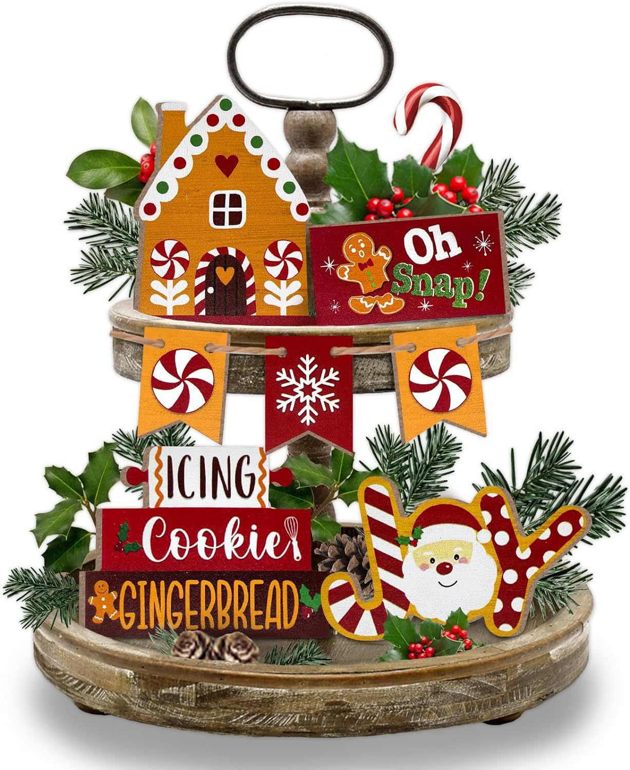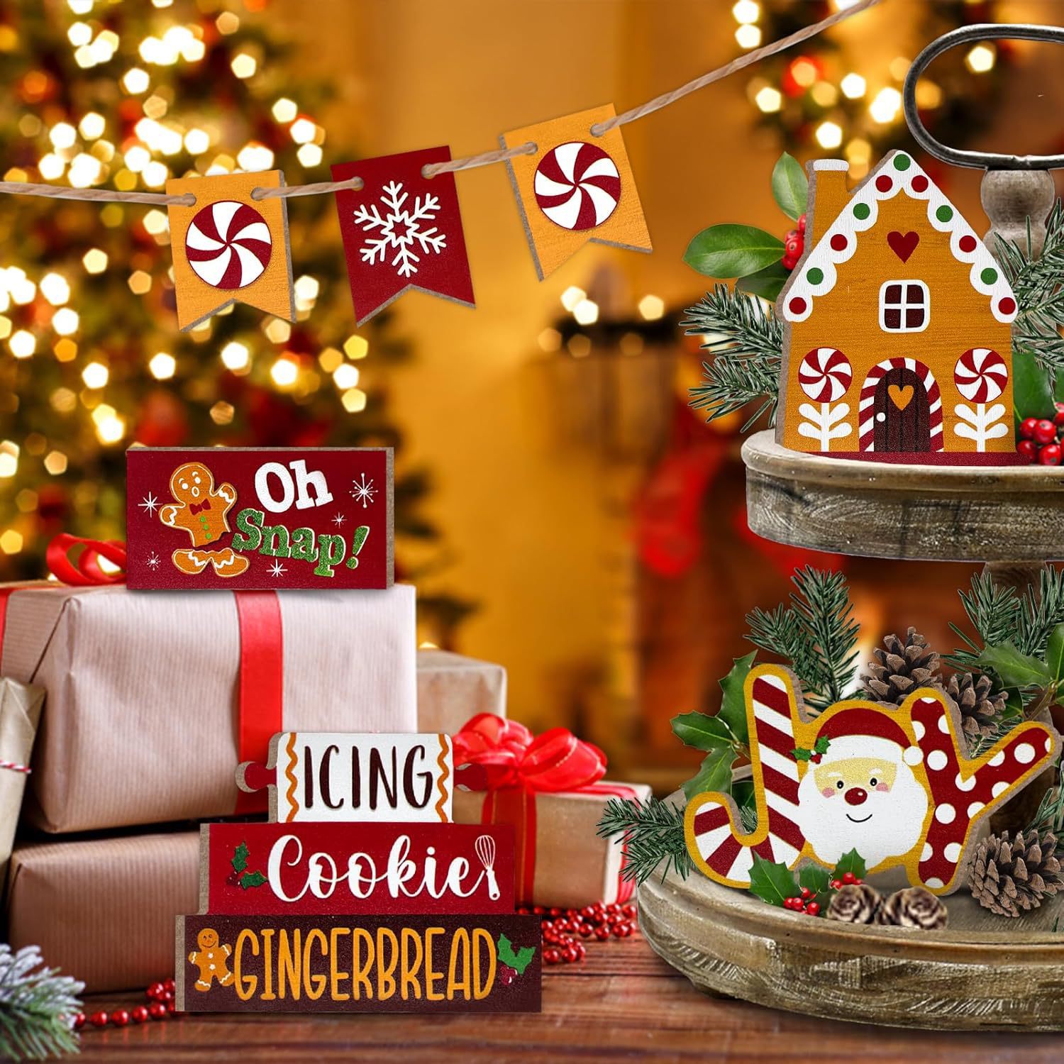 Главная страница > Рождественский многоуровневый поднос украшения фермерский дом пряник мужской дом Санта Клаус конфеты печенье поднос декоративный набор