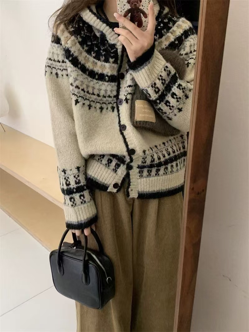 Fair Island ветер ретро жаккардовый свитер с капюшоном женский осень-зима новый мягкий клейкий вязаный кардиган женский топ ленивый дикий