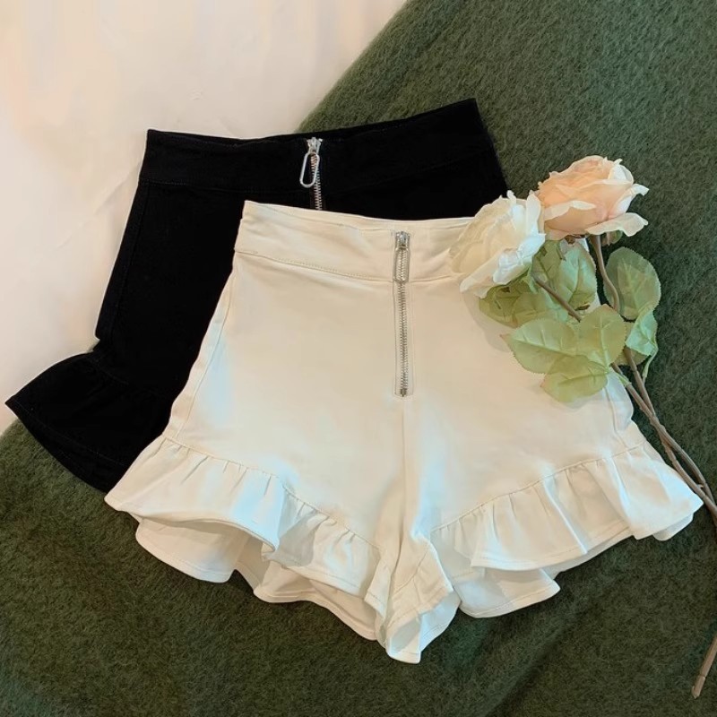 Главная страница > Передняя застежка-молния с высокой талией повседневные шорты женские летние тонкие деревянные уши свободные тонкие широкие брюки сексуальные горячие брюки