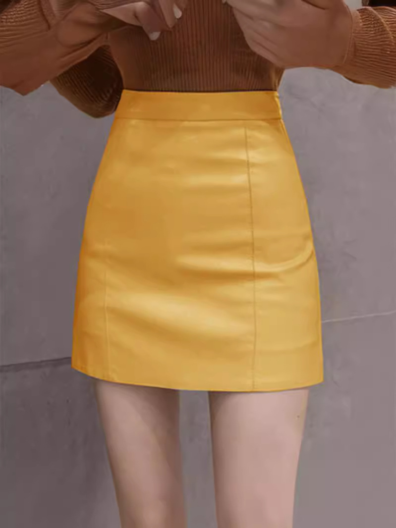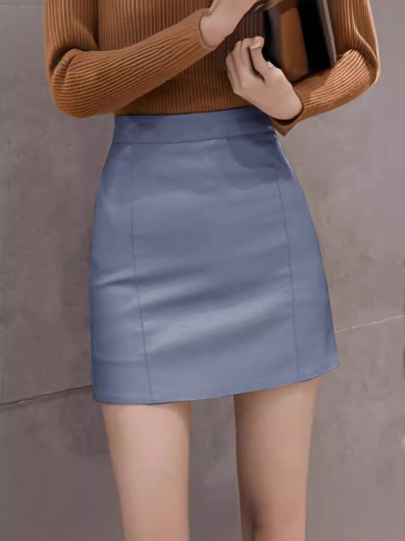 Кожаная юбка осень 2024 осень женская мода новая мода стройная с высокой талией