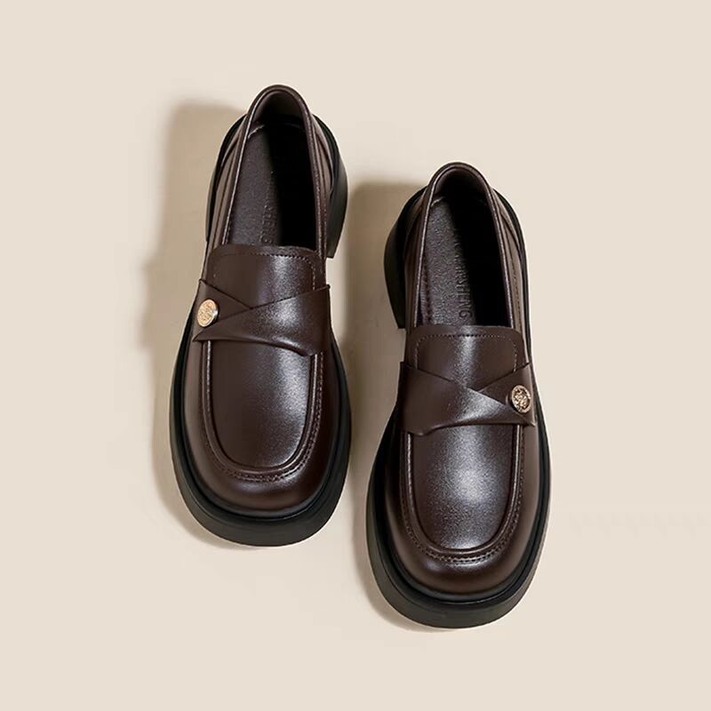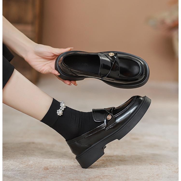 Главная страница > Женские лоферы в французском стиле, британский стиль, новинка весна-осень 2025, кожаные туфли на толстой подошве и массивном каблуке, без застежек.