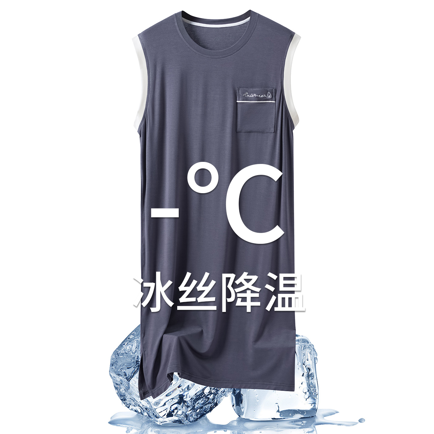 Мужской модальный жилет, ночная рубашка, новинка 2025 года, летний халат, пижама большого размера, свободная шелковистая ночная рубашка, которую можно носить на улице