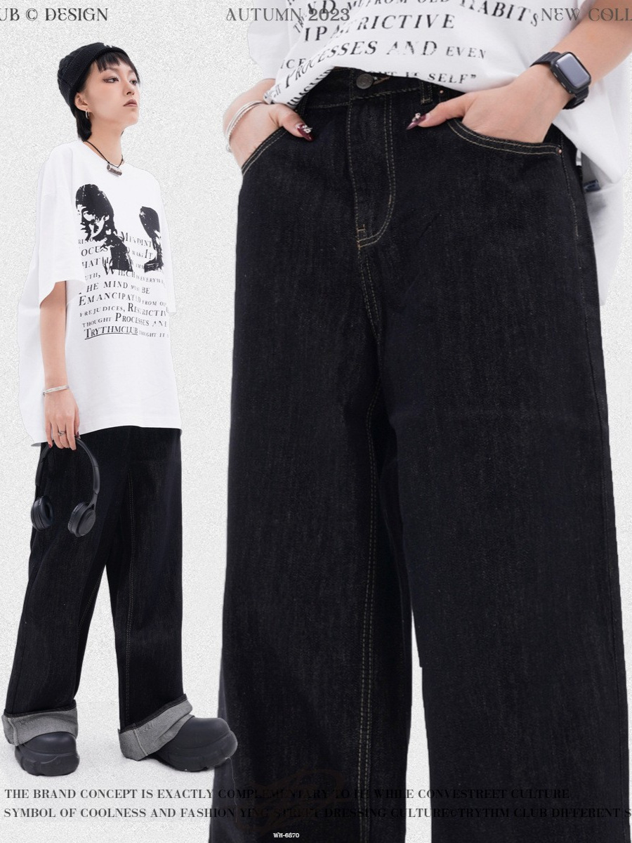 Главная страница > WHOOWAP Американские Джинсы в стиле ретро, мужские свободные прямые модные брендовые широкие швабры High Street ins, длинные брюки