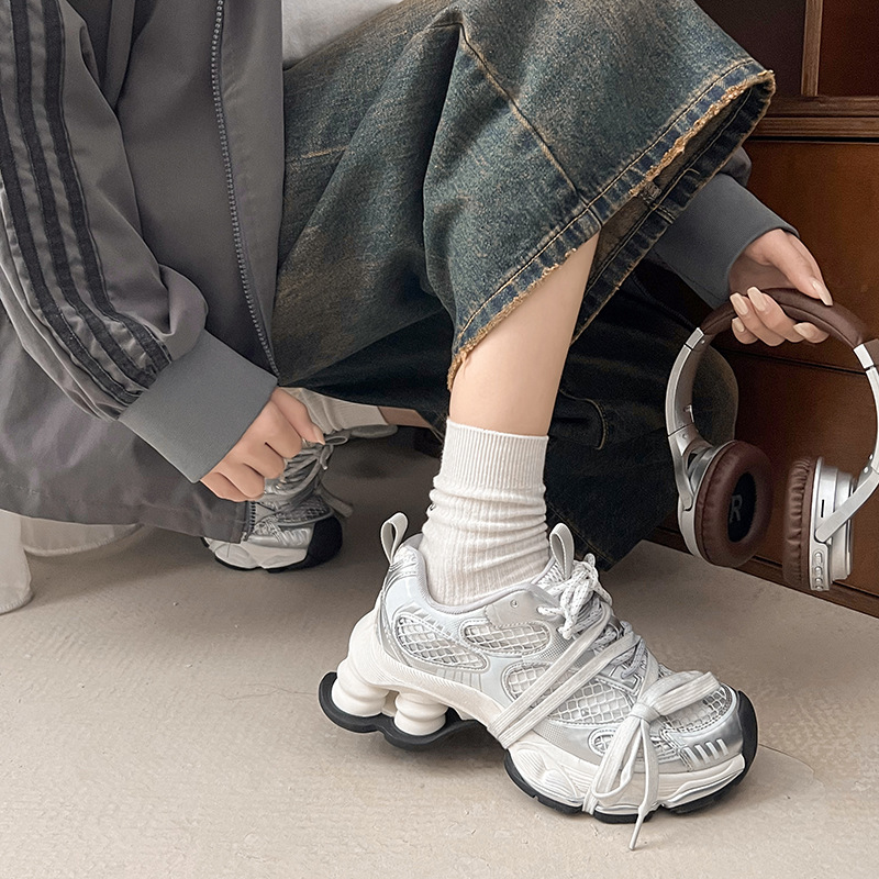 Главная страница > Мягкая воловья кожа ~ Звездная звезда с частицами Xinghe Daddy обувь для женщин 2025 новые серебряные кроссовки на толстой подошве повседневная обувь