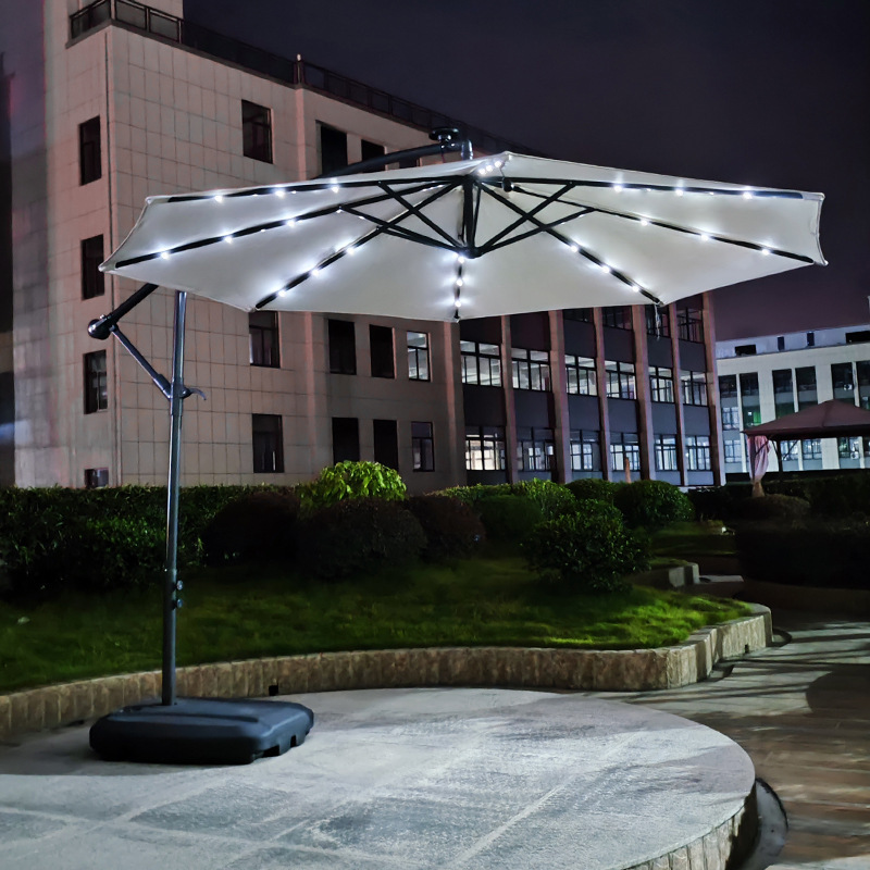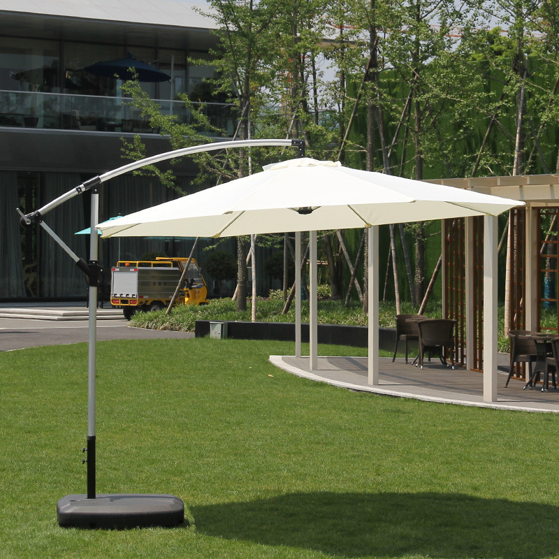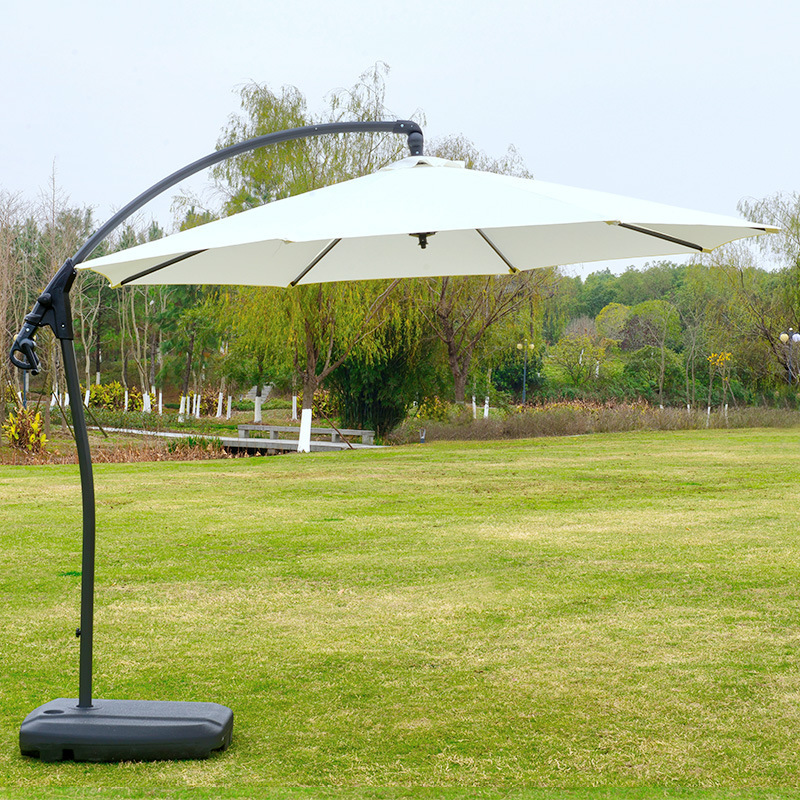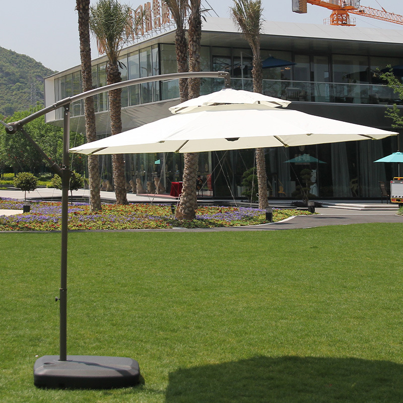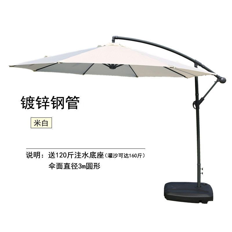 Железный зонт-банан длиной 2,7 м, двойной верх, кремово-белый, с наполненным водой основанием