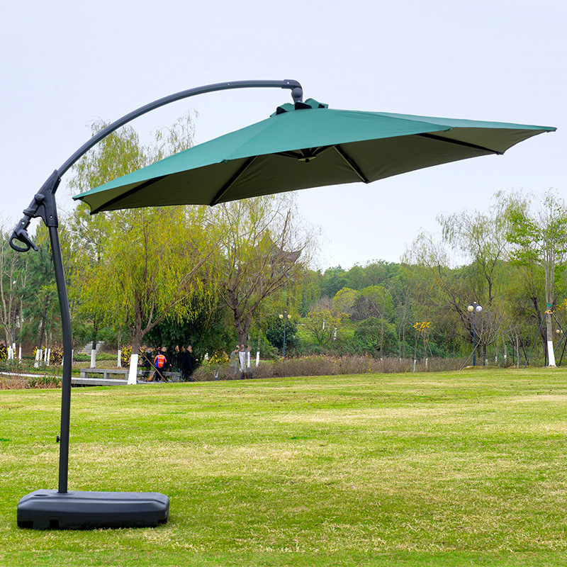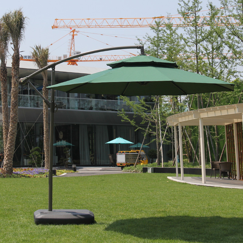Железный зонт-банан с двойным верхом, 2,7 м, темно-зеленый, с наполненным водой основанием