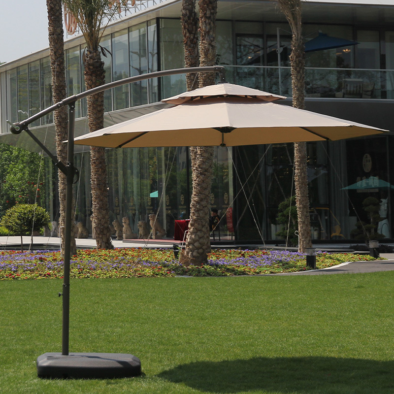 Железный зонт-банан длиной 2,7 м с двойным верхом цвета хаки и наполненным водой основанием