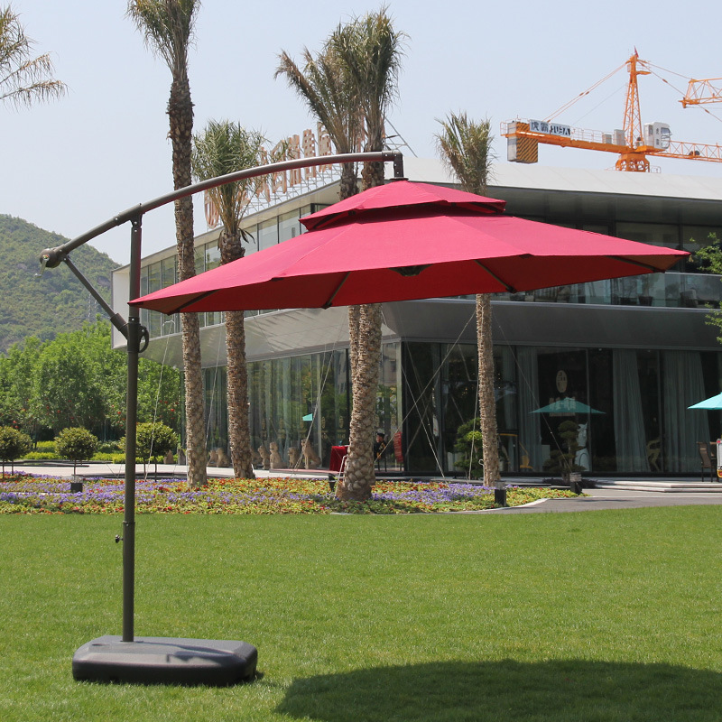 Железный зонт-банан с двойным верхом, 2,7 м, бордовый, с наполненным водой основанием