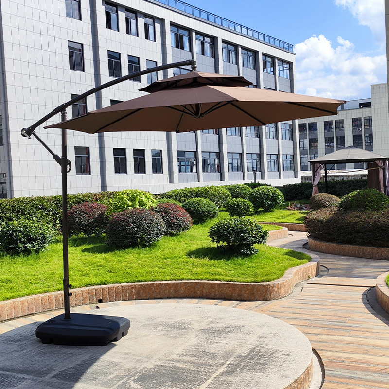 Железный зонт-банан с двойным верхом, 2,7 м, коричневый, с наполненным водой основанием