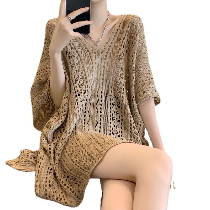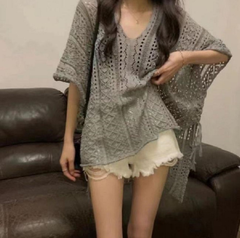 Главная страница > Трикотаж с v-образным вырезом и короткими рукавами, женский тонкий осенний дизайн, уникальная шикарная свободная блузка, топ