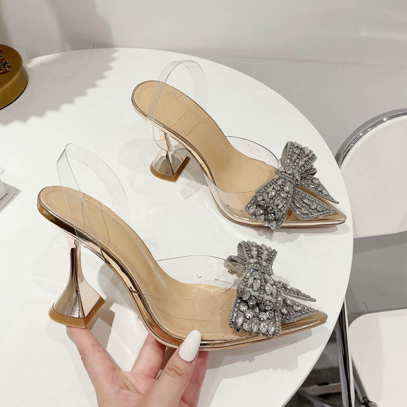 Трансграничная Внешняя торговля лето новый стиль платье элегантные туфли на высоком каблуке со стразами лук закрытый носок прозрачные сандалии для женщин