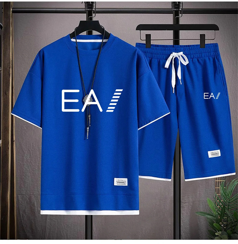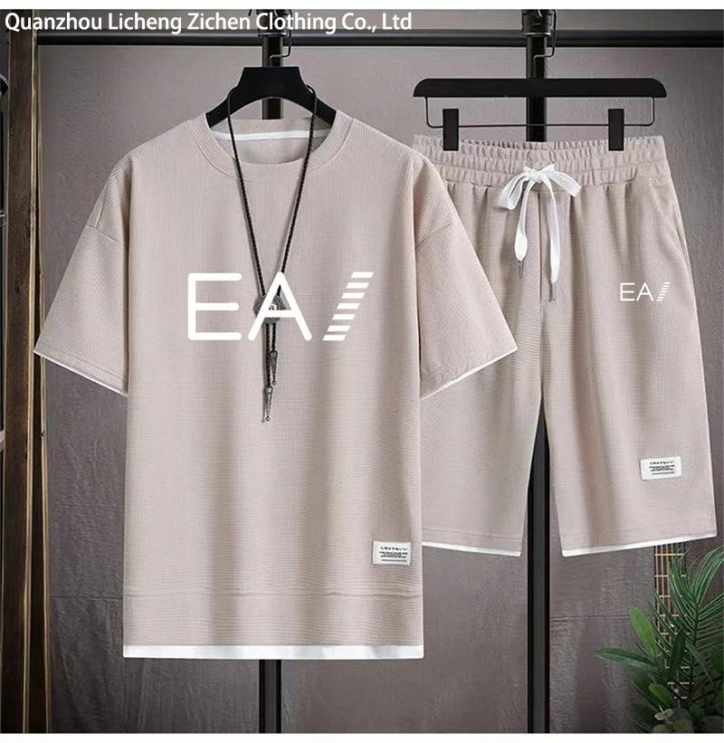 Главная страница > Wafgge с короткими рукавами Летняя футболка для мужчин повседневный спортивный набор оптовые свободные поддельные две футболки с короткими рукавами из двух частей