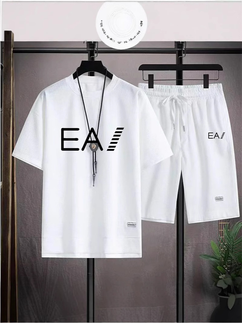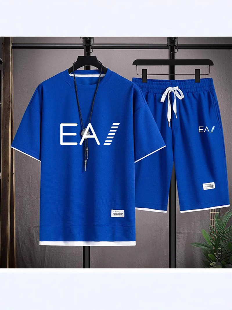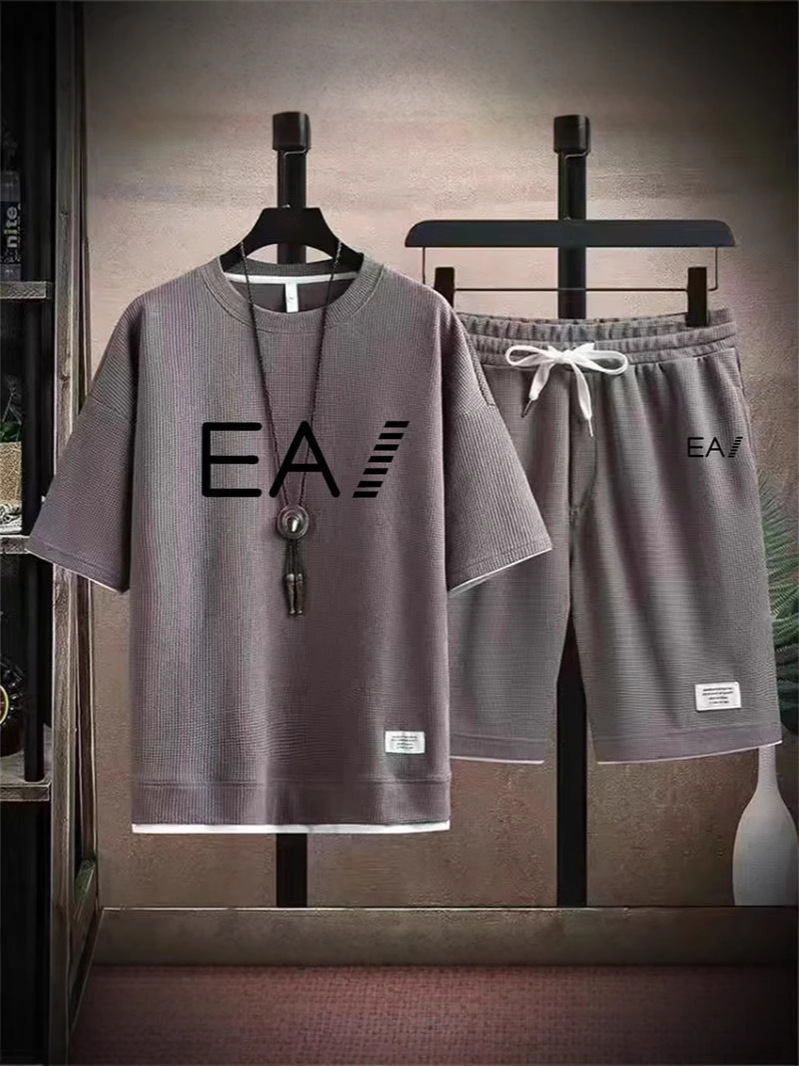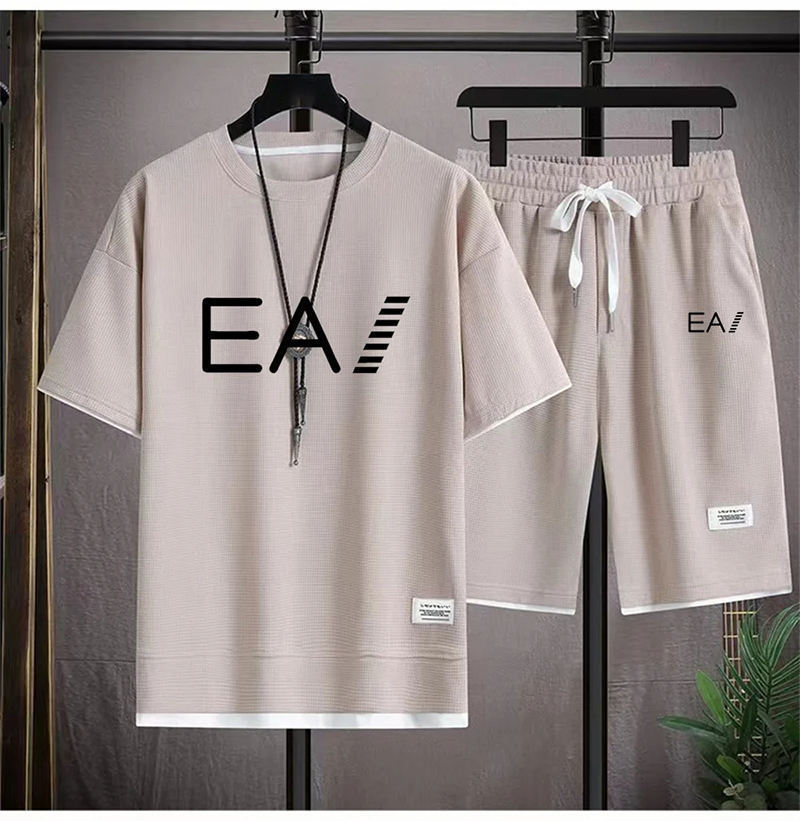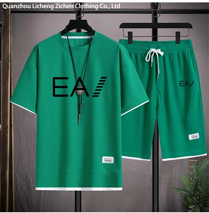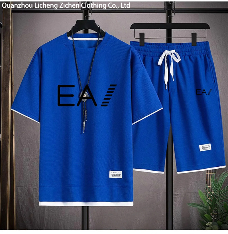 Wafgge с короткими рукавами Летняя футболка для мужчин повседневный спортивный набор оптовые свободные поддельные две футболки с короткими рукавами из двух частей