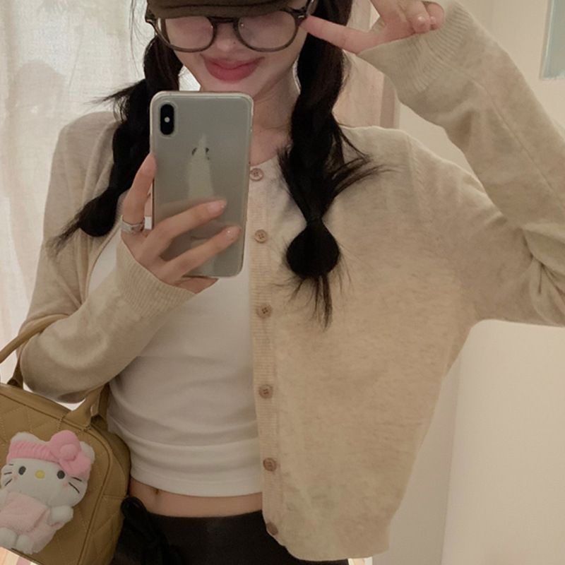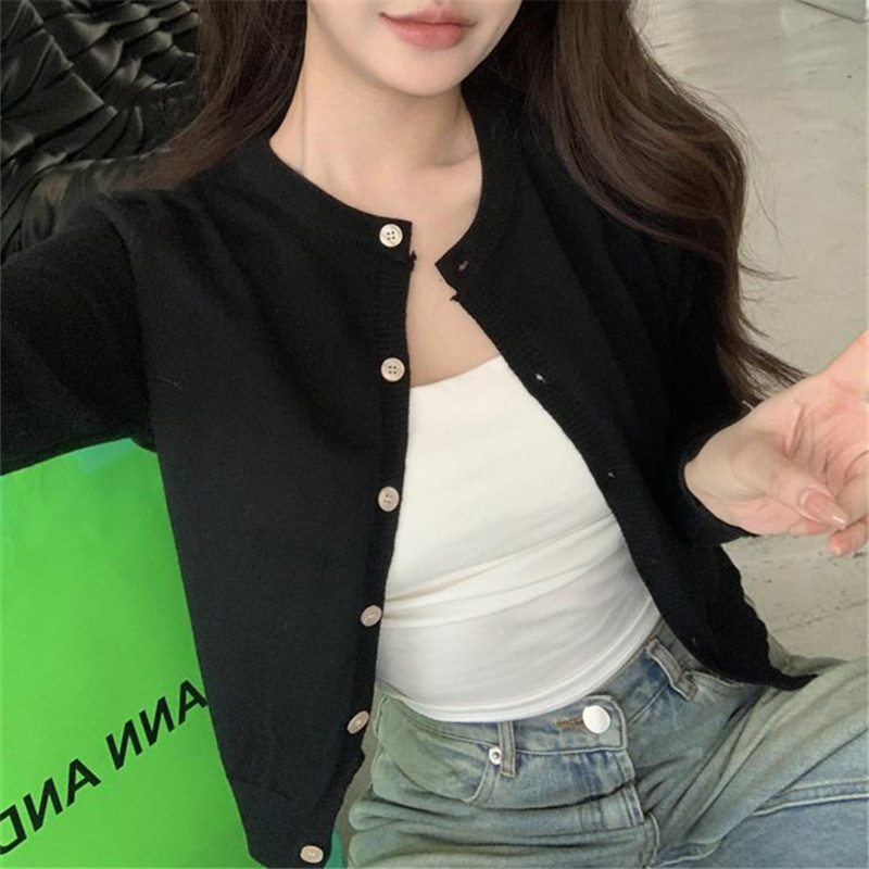 Главная страница > Твидовый стиль, красный вязаный кардиган с круглым вырезом и длинными рукавами, женский осенний 2023, новая тонкая элегантная трикотажная куртка