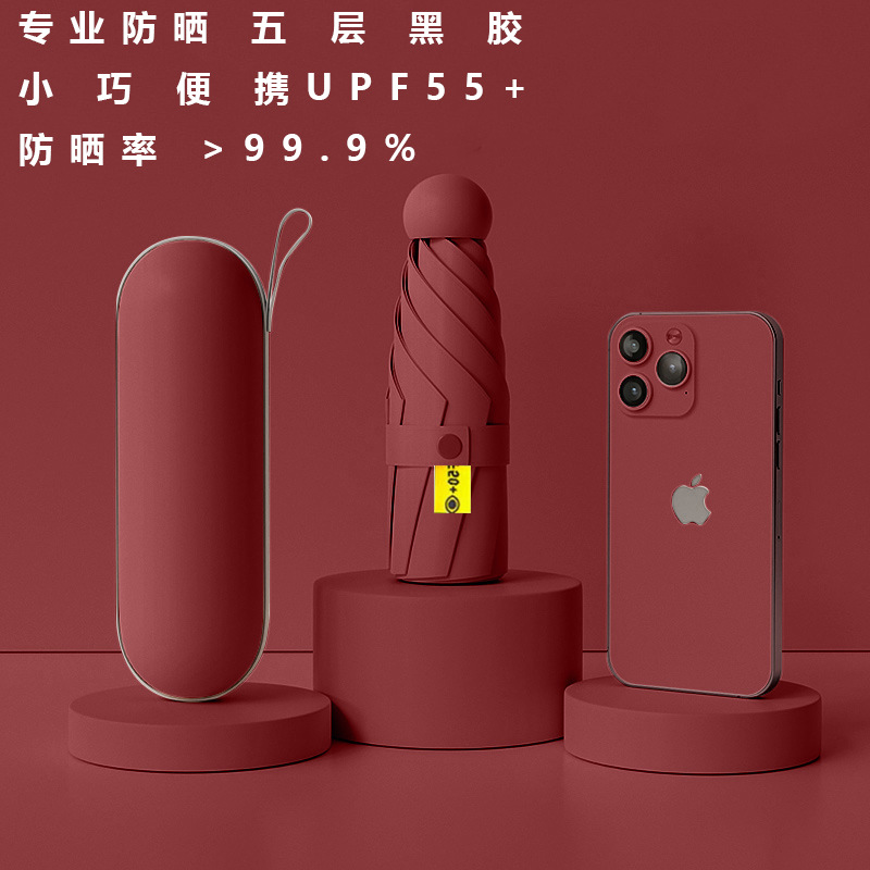 Главная страница > Пятикратный зонт, солнечный и дождливый двойного назначения, Ультра-легкий черный зонт от солнца, Портативный Капсула, Женский Карманный солнцезащитный крем, мини-зонт