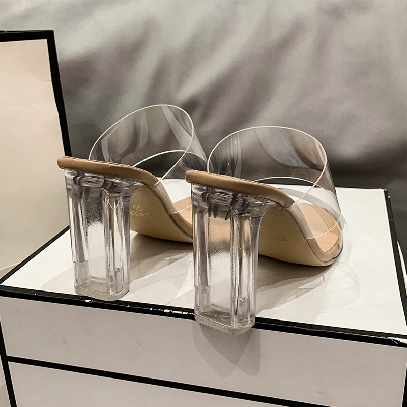 Главная страница > Высокие каблуки сандалии женский 2024 летний новый стиль с толстыми каблуками высокого уровня прозрачные хрустальные женские холодные тапочки