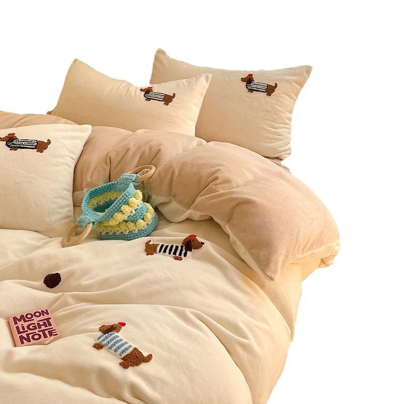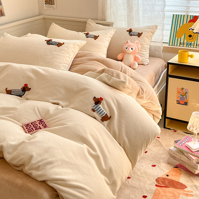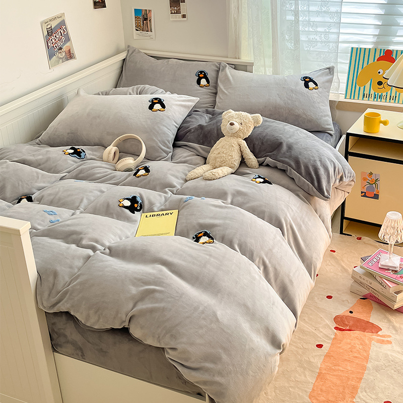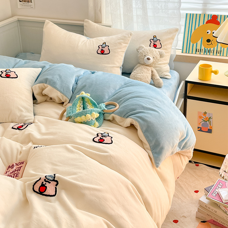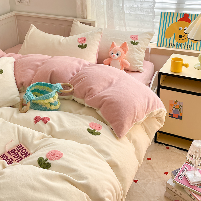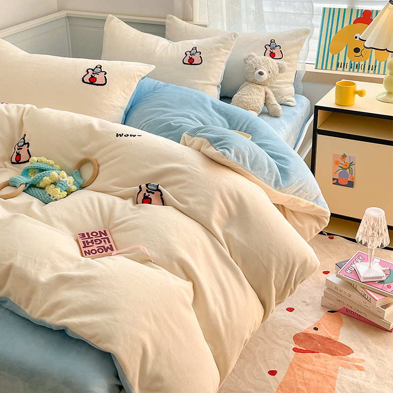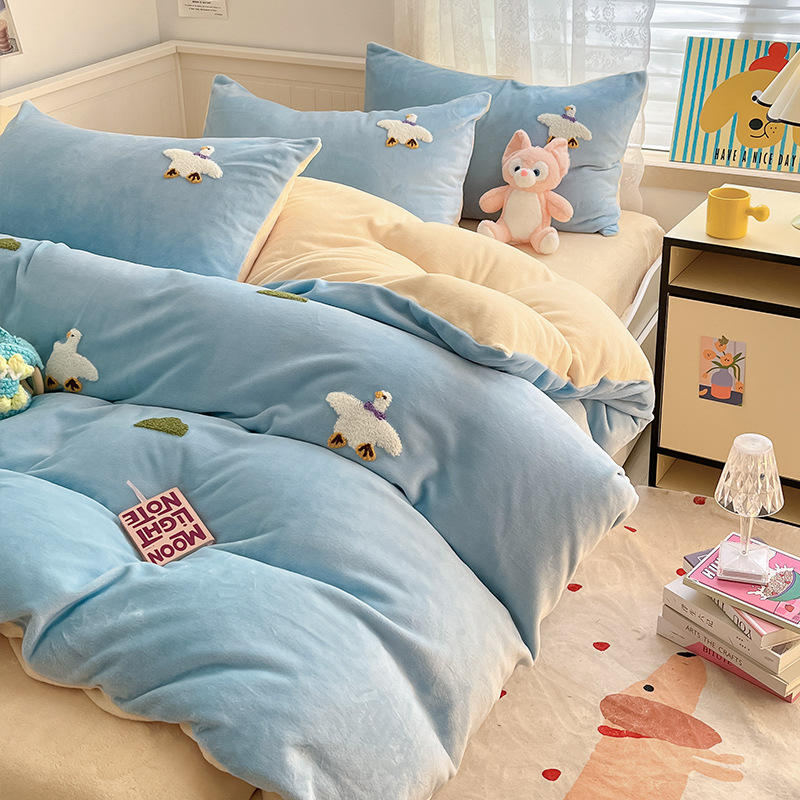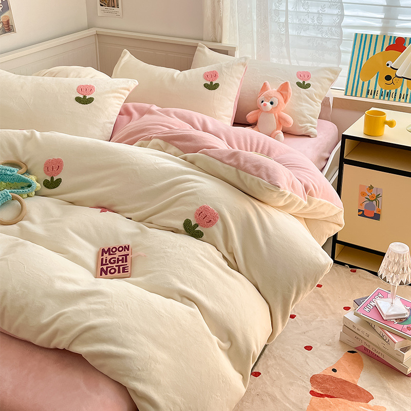 Ins ветряные полотенца вышитые молоком бархат кровати набор из четырех частей зимние коралловые фланелевые кровати