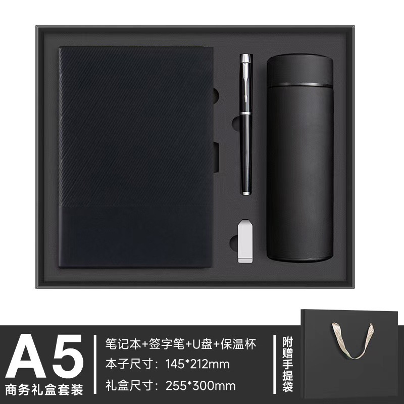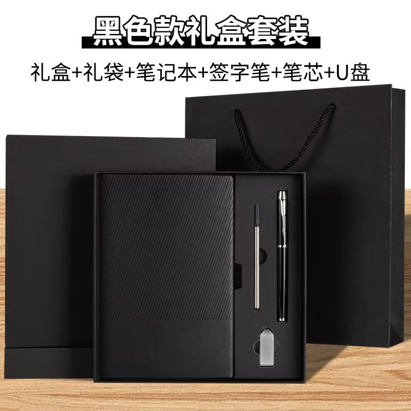 Подарочная коробка) А5/черный+ручка+заправка+U диск