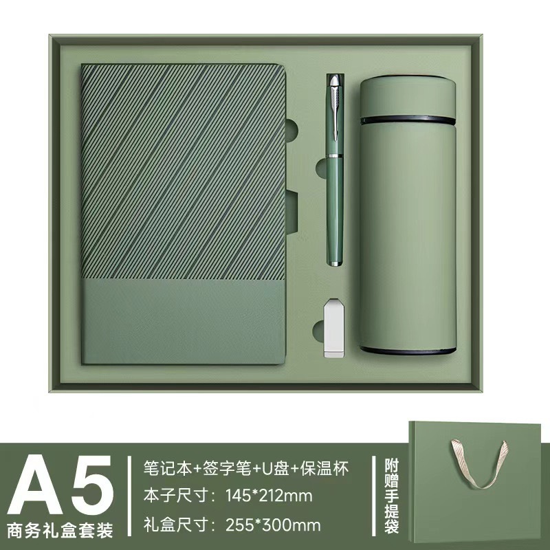 (Подарочная коробка) А5/зеленый матча+ручка+термос+U-диск