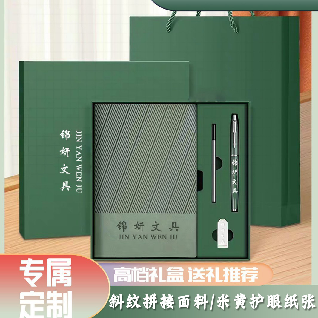 (Подарочная коробка) A5/зеленый матча+ручка+заправка+U-диск