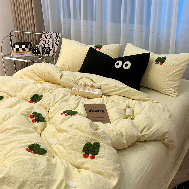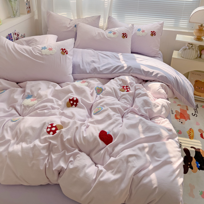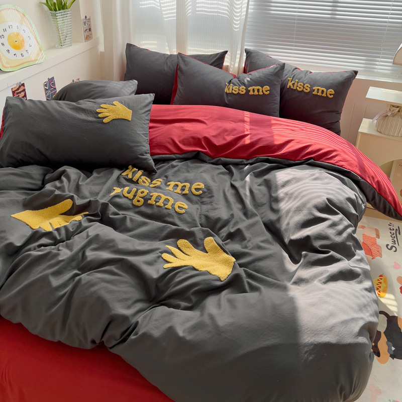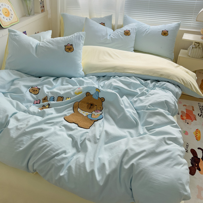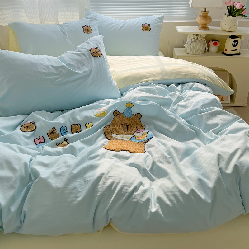 Главная страница > Промытое водой Хлопковое полотенце вышитый комплект из четырех предметов голое спальное постельное белье простыня пододеяльник шапка для кровати студенческое общежитие сплошной цвет Комплект из трех предметов