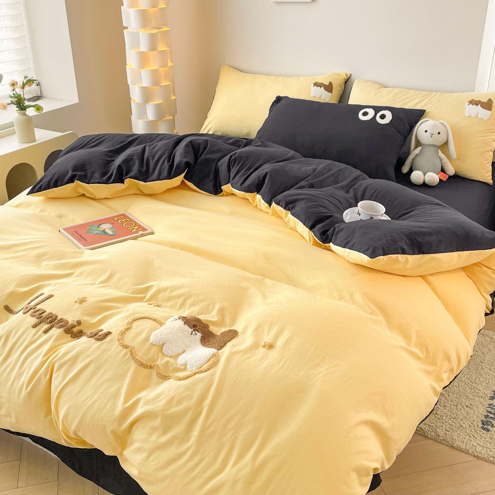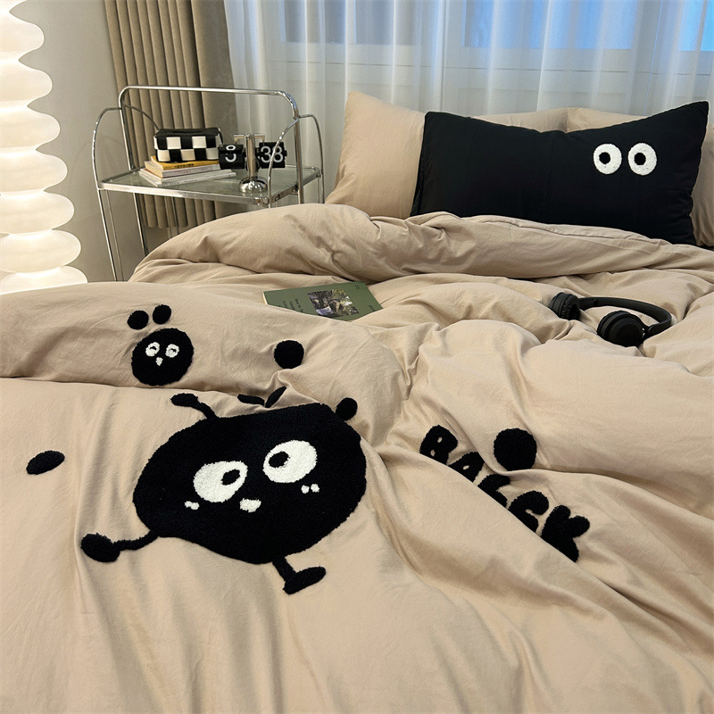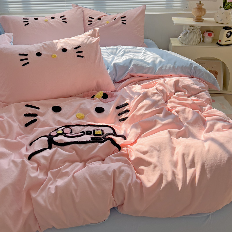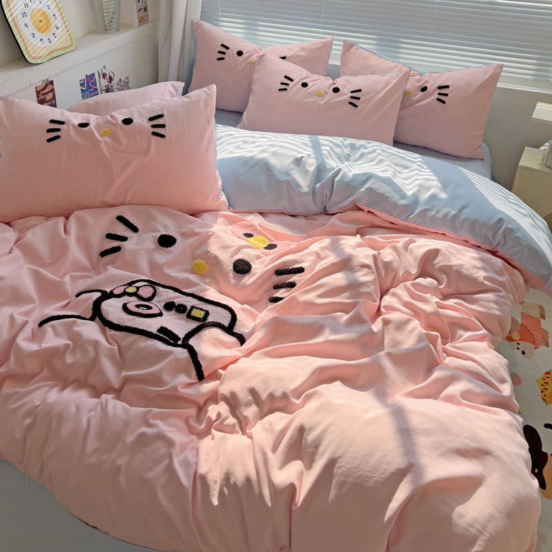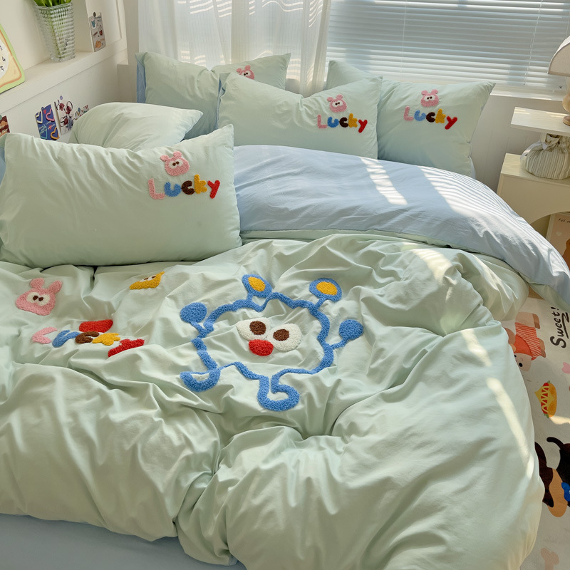 Главная страница > Промытое водой Хлопковое полотенце вышитый комплект из четырех предметов голое спальное постельное белье простыня пододеяльник шапка для кровати студенческое общежитие сплошной цвет Комплект из трех предметов