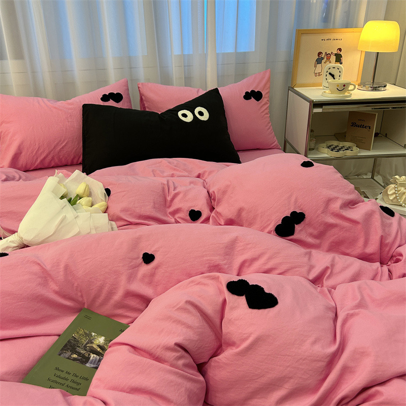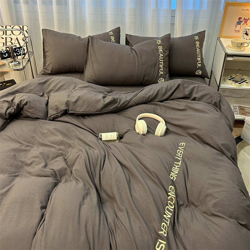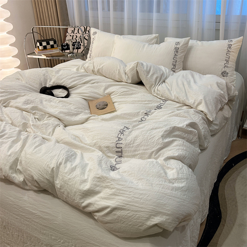 Промытое водой Хлопковое полотенце вышитый комплект из четырех предметов голое спальное постельное белье простыня пододеяльник шапка для кровати студенческое общежитие сплошной цвет Комплект из трех предметов