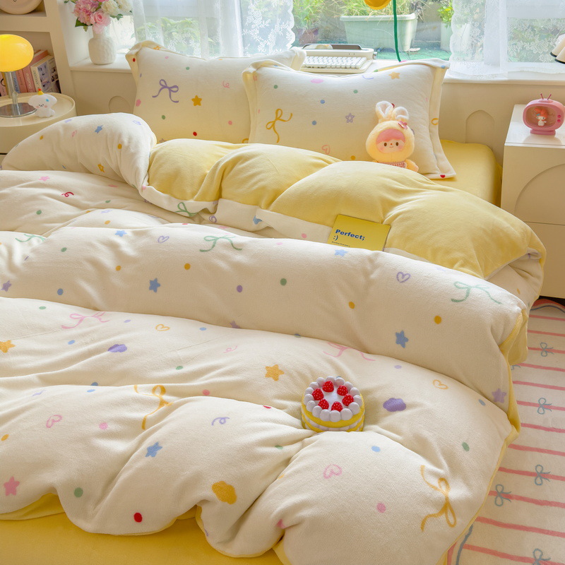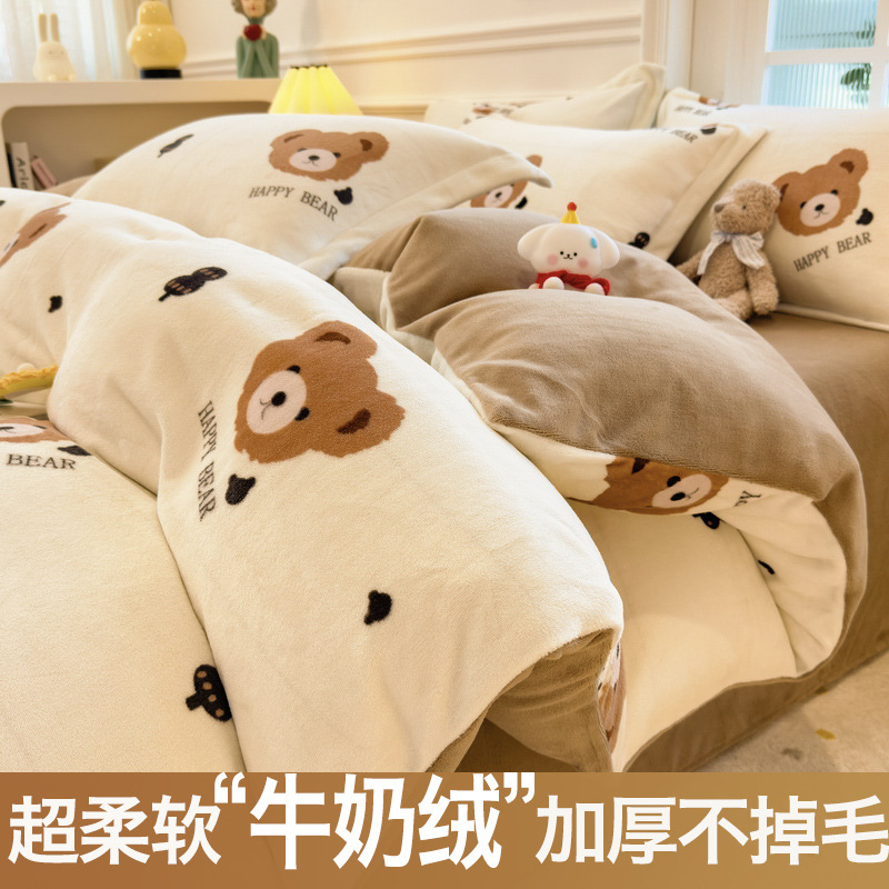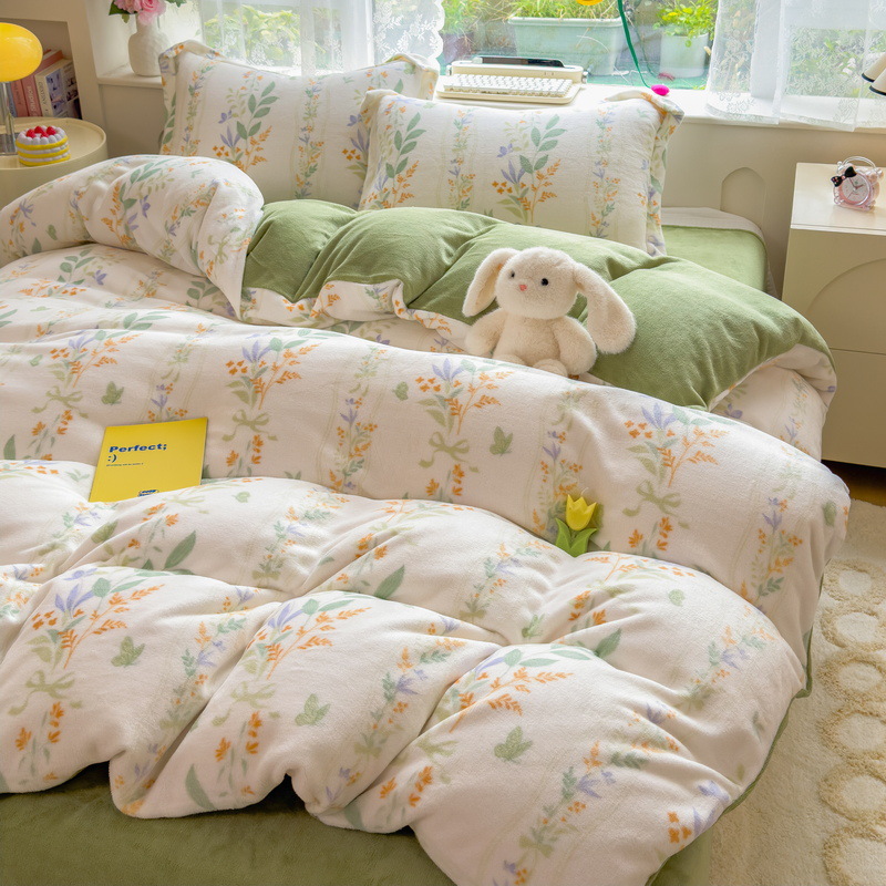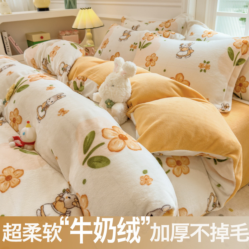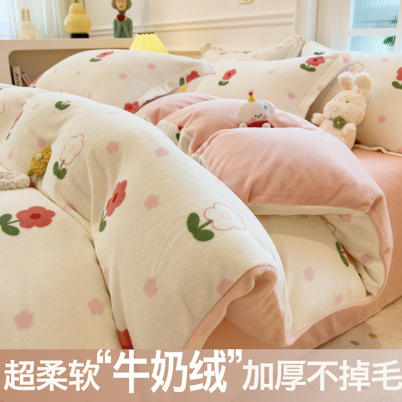 Главная страница > Зимний утолщенный комплект из четырех предметов из молочного вельвета, а также комплект из трех предметов из кораллового вельвета с плюшевой подкладкой, антистатический, с простыней на резинке, пододеяльником и простыней на резинке.