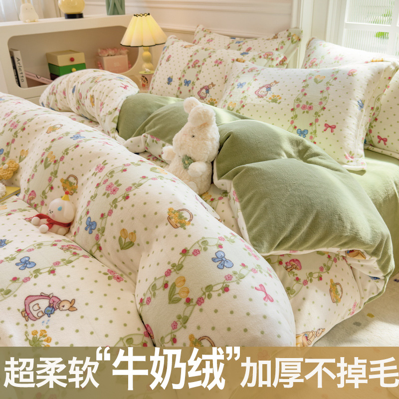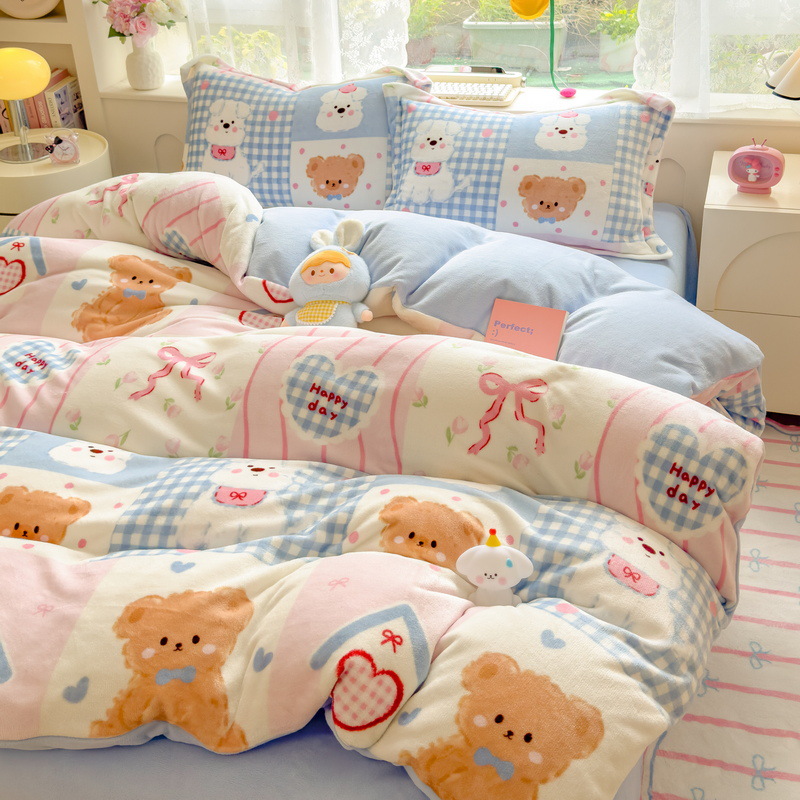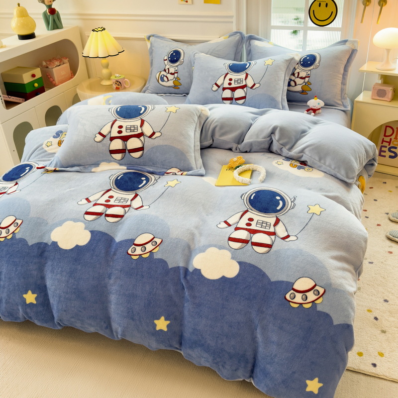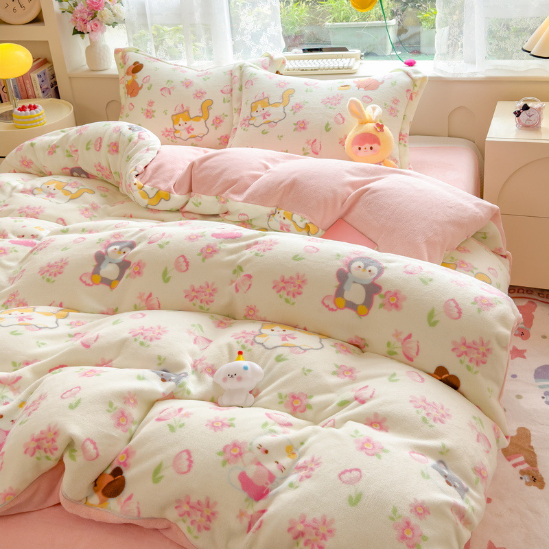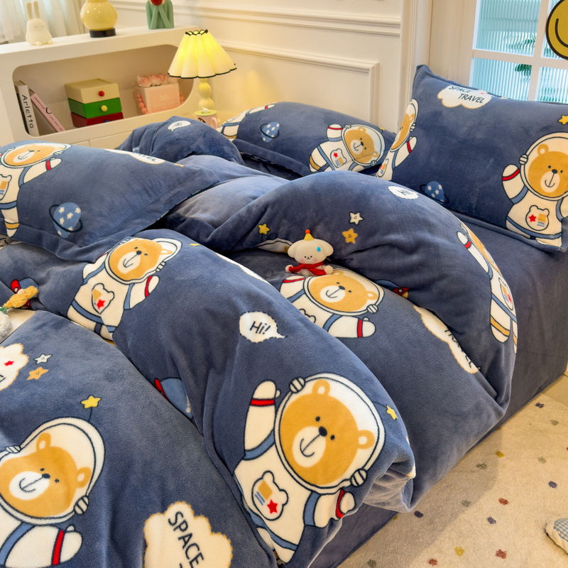 Главная страница > Зимний утолщенный комплект из четырех предметов из молочного вельвета, а также комплект из трех предметов из кораллового вельвета с плюшевой подкладкой, антистатический, с простыней на резинке, пододеяльником и простыней на резинке.