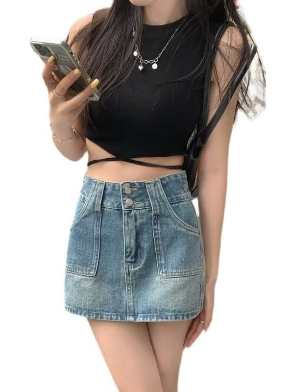 Главная страница > Модная горячая девушка стирка джинсовая юбка летняя юбка с полукругом с подкладкой с высокой талией