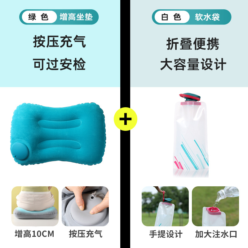 Зеленый[]белый мешок для воды★Нажмите, чтобы надуть★Увеличить высоту на 8-10 см.★Складной и портативный[]