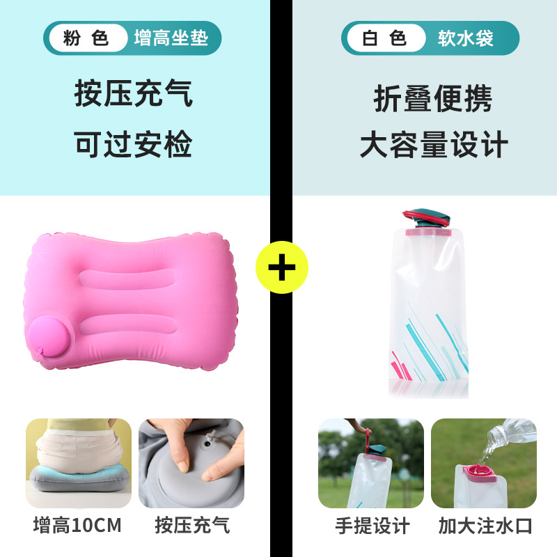 Розовый[]белый мешок для воды ★ Нажмите, чтобы надуть ★ Увеличить высоту на 8-10 см. ★ Складной и портативный[]
