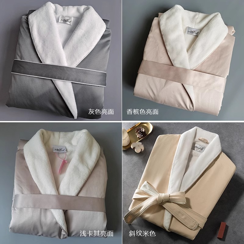 Главная страница > Пятизвездочный халат Hilton для женщин, осенне-зимний утолщенный тонкий бархатный халат для пар, мужская ночная рубашка, длинная J ^ современная серая J ^