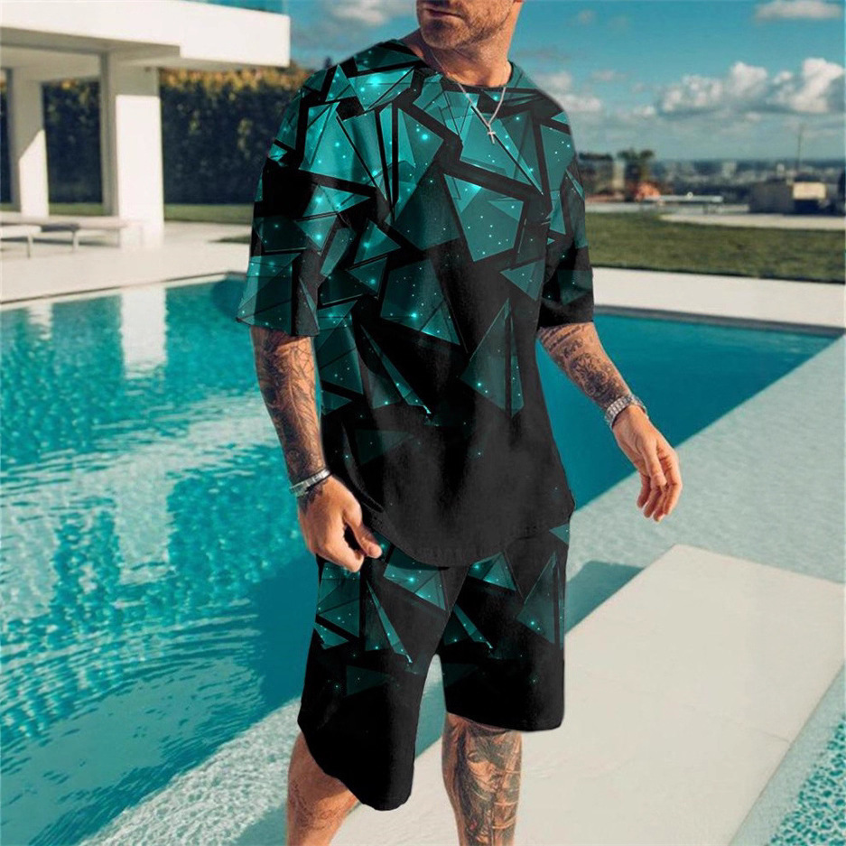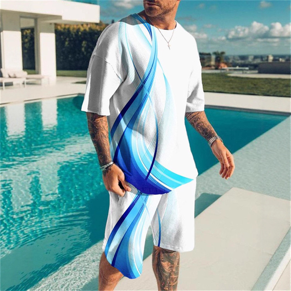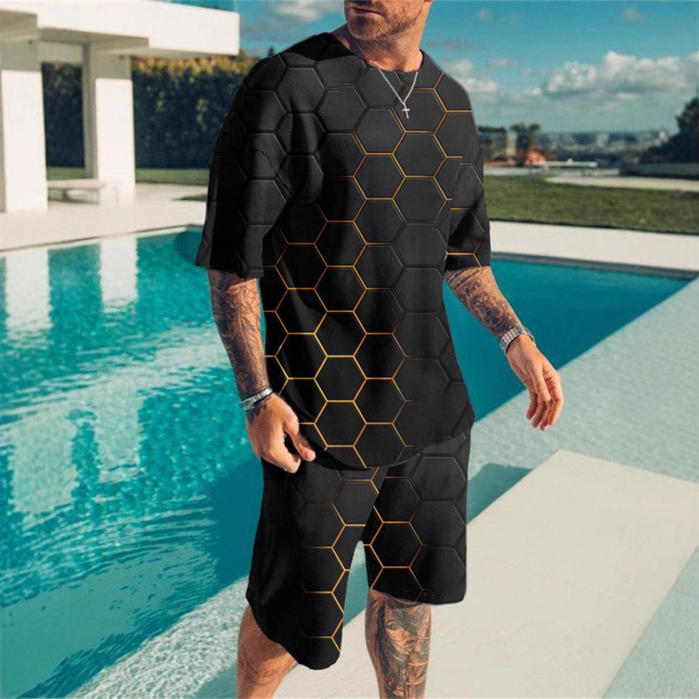 Мужской комплект: футболка с коротким рукавом больших размеров и шорты с принтом в европейском и американском стиле, повседневный, модный бренд