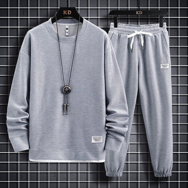 Главная страница > 华夫格套装男士春秋新款休闲运动长袖长裤两件套潮牌帅气一套衣服