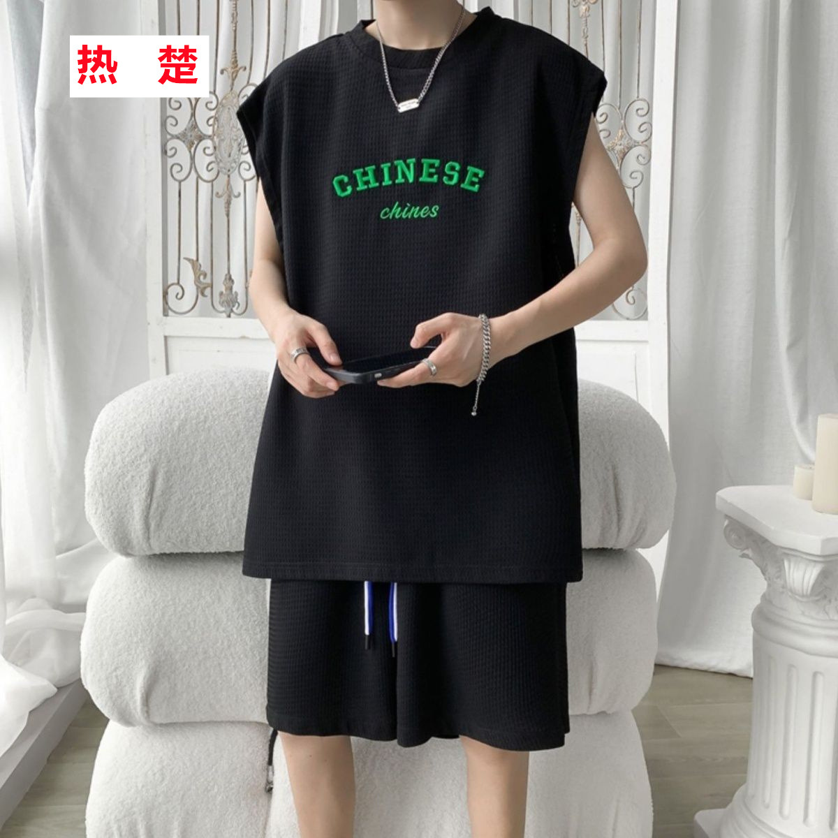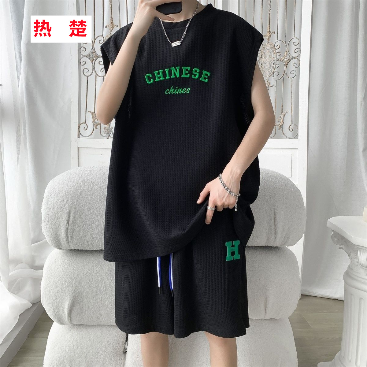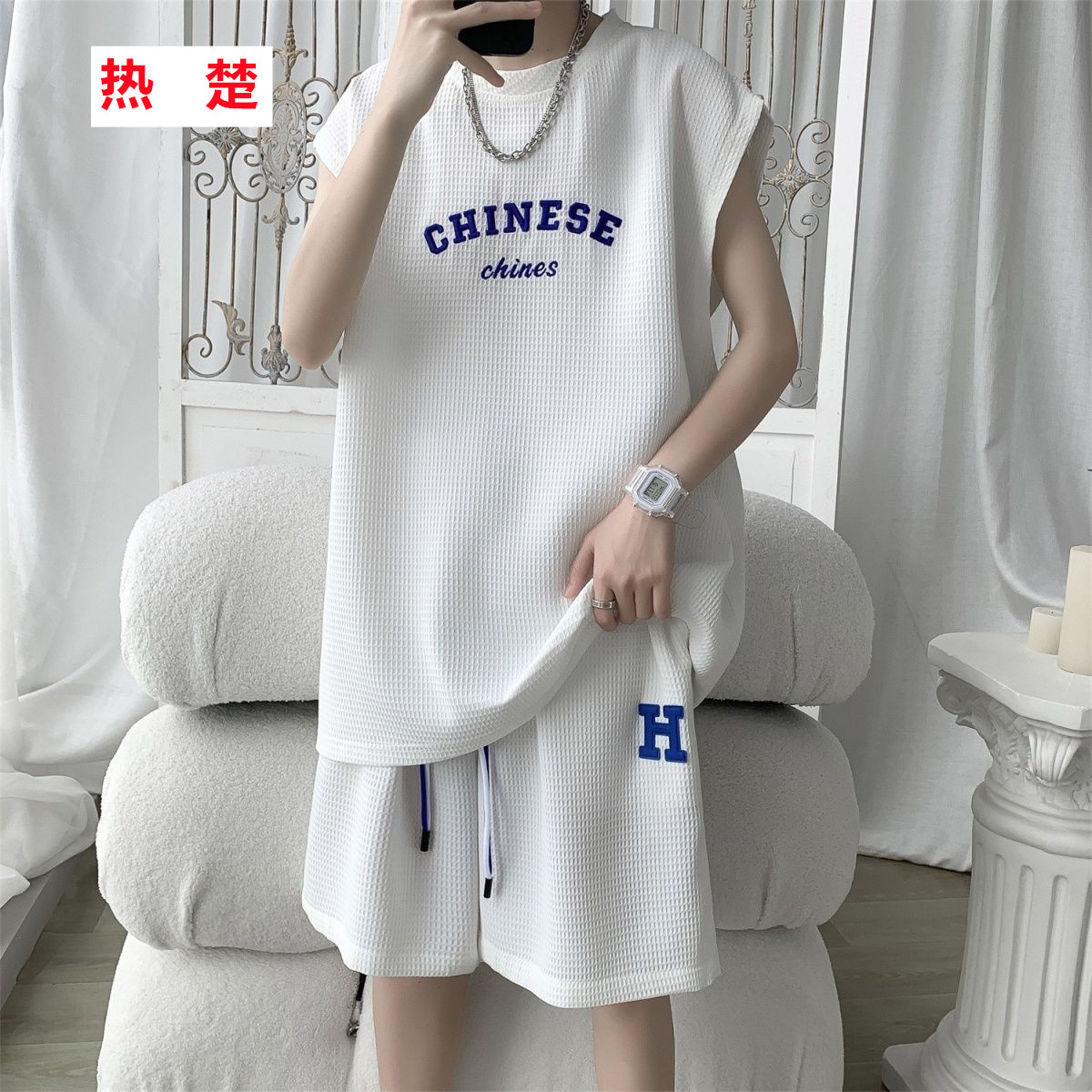 Главная страница > Летние вафли для мужчин повседневные футболки без рукавов для мужчин шорты из двух частей для подростков