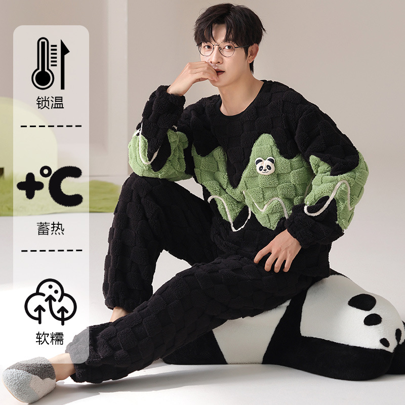 Главная страница > [100% полиэфирное волокно] Пара кораллового бархатного пижамы утолщения весной и осенью