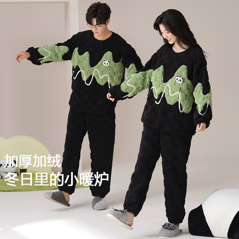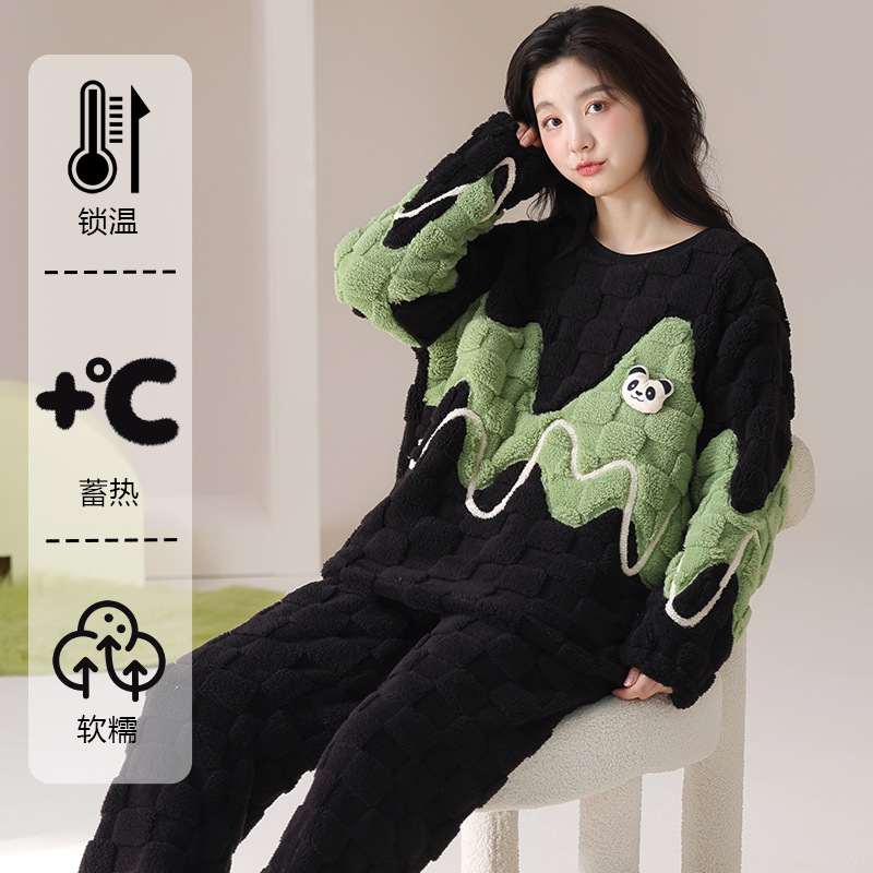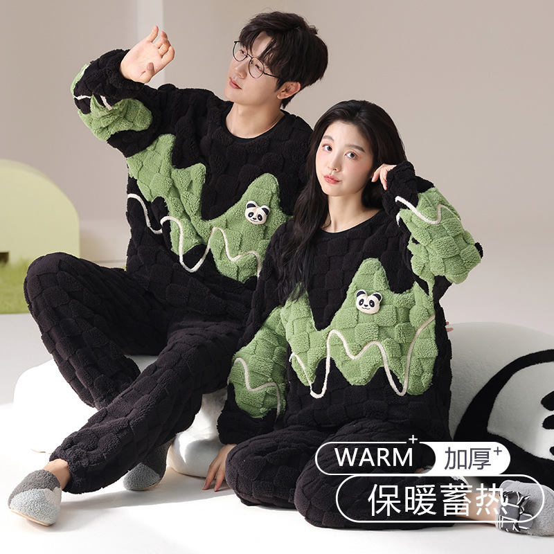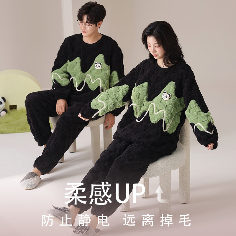 [100% полиэфирное волокно] Пара кораллового бархатного пижамы утолщения весной и осенью