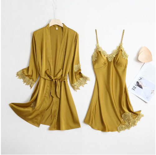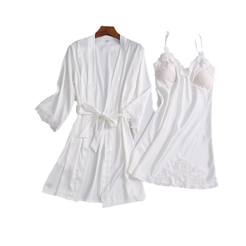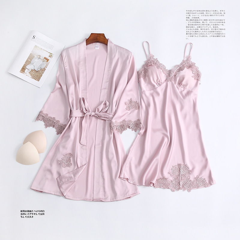 Главная страница > 20 новинка, Женский пижамный комплект из двух предметов с подкладкой на груди, шелковая пикантная ночная рубашка с V-образным вырезом и сексуальным ремешком, Водорастворимая кружевная ночная рубашка