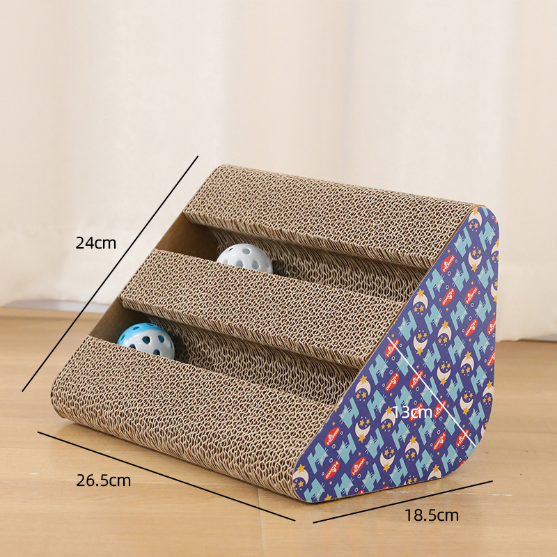 Треугольная гофрированная когтеточка для кошек с разноцветными колокольчиками