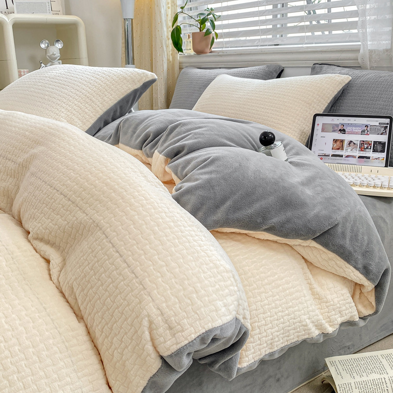 Оптовая продажа молочного бархата из четырех частей постельное белье одеяло постельное белье одеяло утолщение осенью и зимой