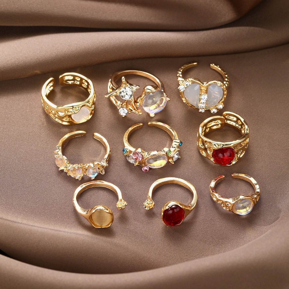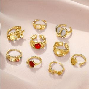 Нерегулярные Расширенный чужеродных драгоценный камень кристалл агат чужеродных лавы опал цветок бутон Сплит кольцо 9 шт набор Белый K