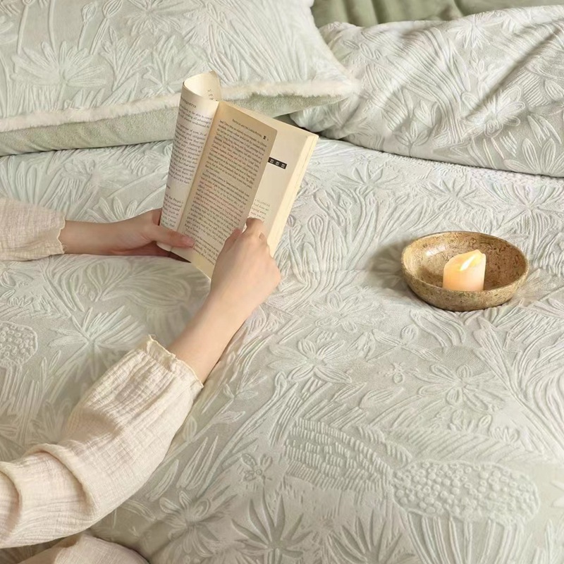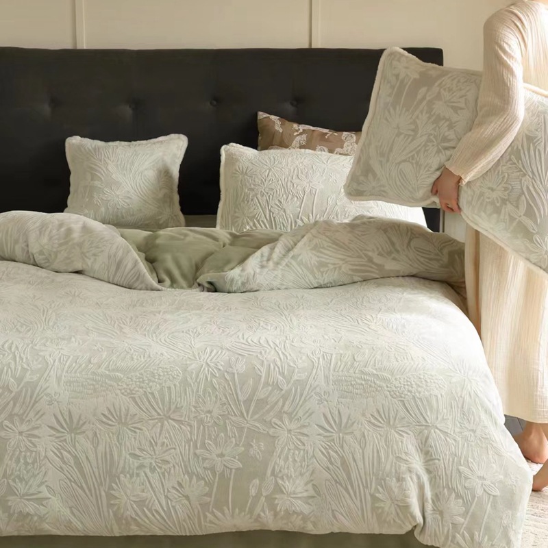 Главная страница > Элитный теплый комплект из четырех предметов из резного молочного бархата, французский кремовый двусторонний бархат высокой плотности, утолщенные зимние простыни и пододеяльник.