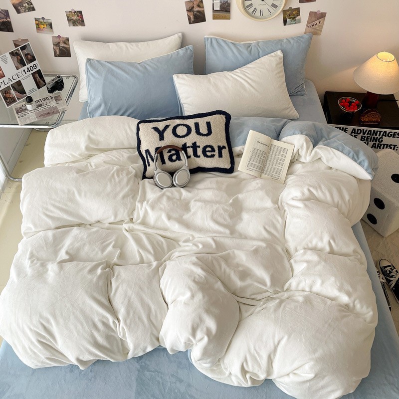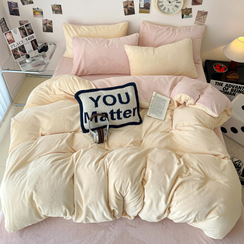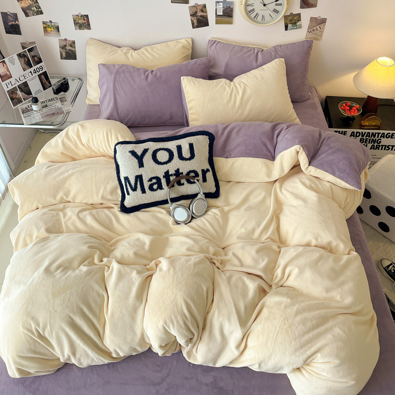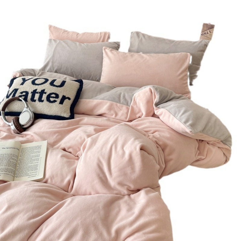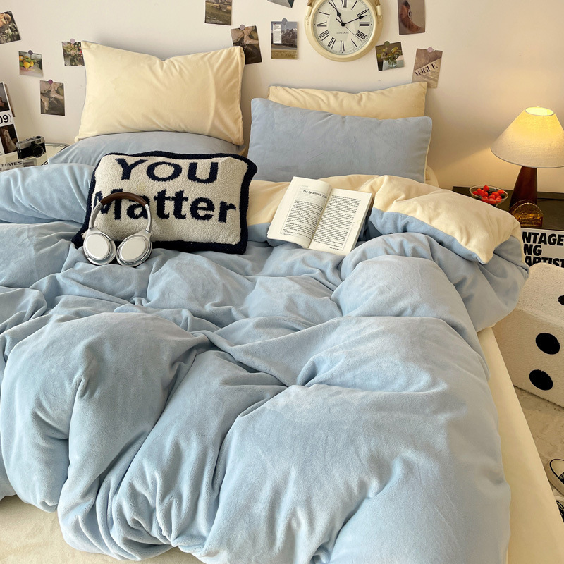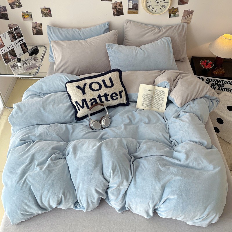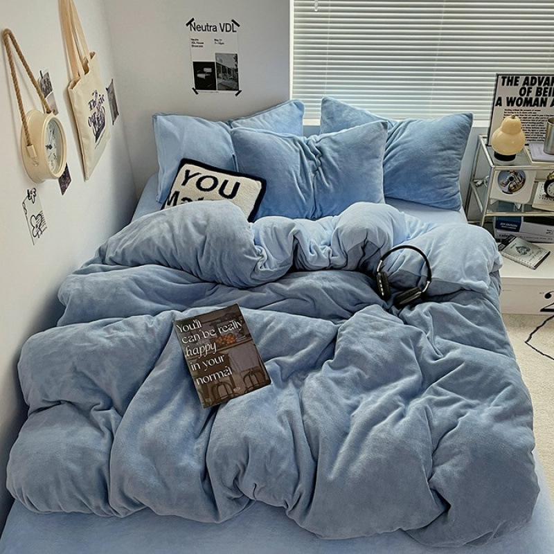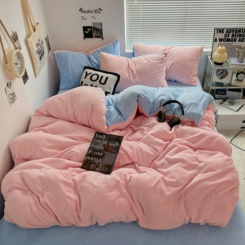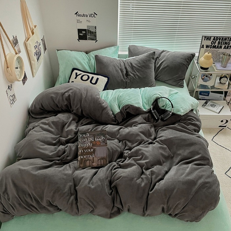 Главная страница > Категория А, набор из четырех стеганых одеял, зимний коралловой бархат, набор из трех предметов постельного белья 4 общежития