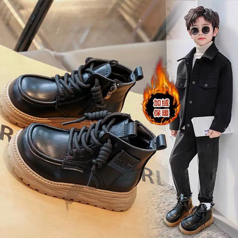 Главная страница > Ботинки Мартины для мальчиков 2024, осенние и зимние черные детские ботинки из натуральной мягкой кожи, второй хлопок, средние и большие детские бархатные короткие сапоги для девочек, противоскользящие
